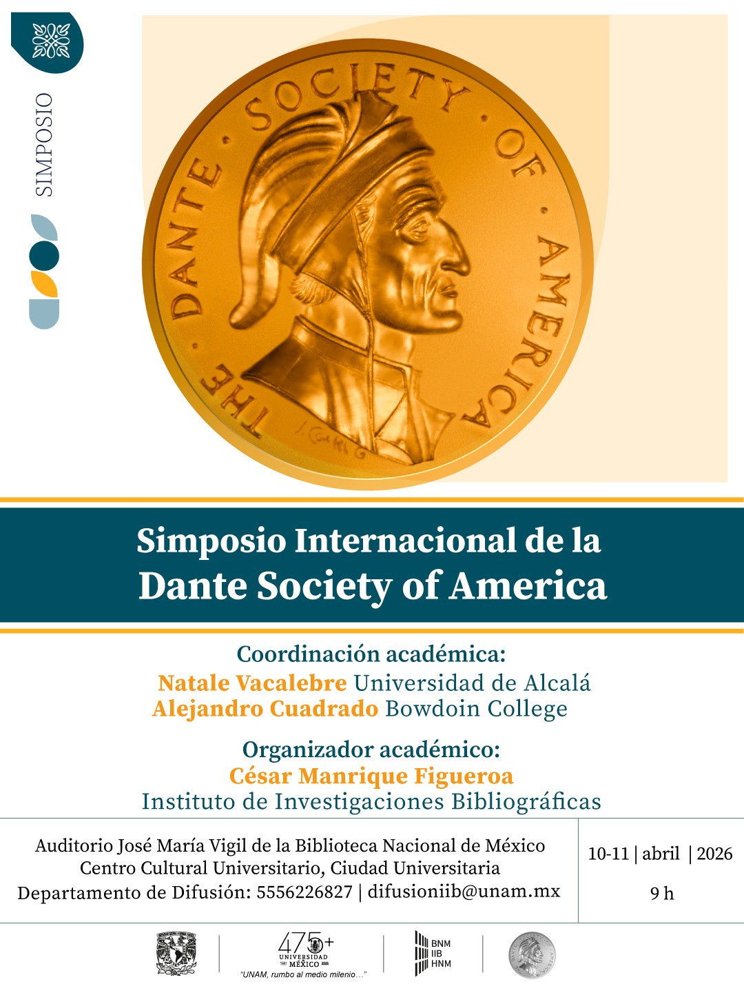 Asiste a las actividades del Simposio Internacional de la Dante Society of America, realizado bajo la coordinación académica de Natale Vacalebre & Alejandro Cuadrado, y la organización académica de César Manrique Figueroa.