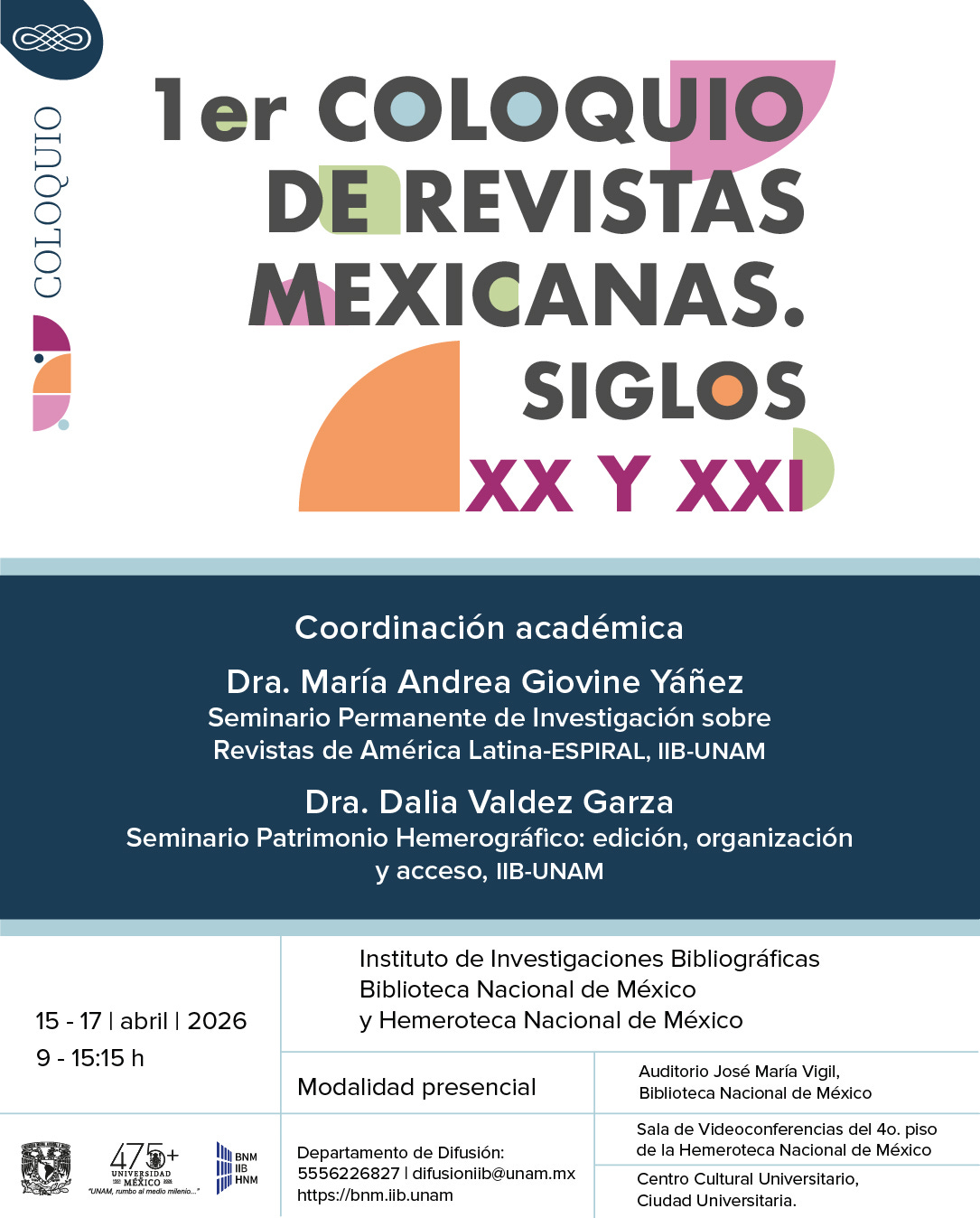 Acompáñanos en el Primer Coloquio de Revistas Mexicanas. Siglos XX y XXI, realizado bajo la coordinación académica de María Andrea Giovine Yáñez y Dalia Valdez Garza.